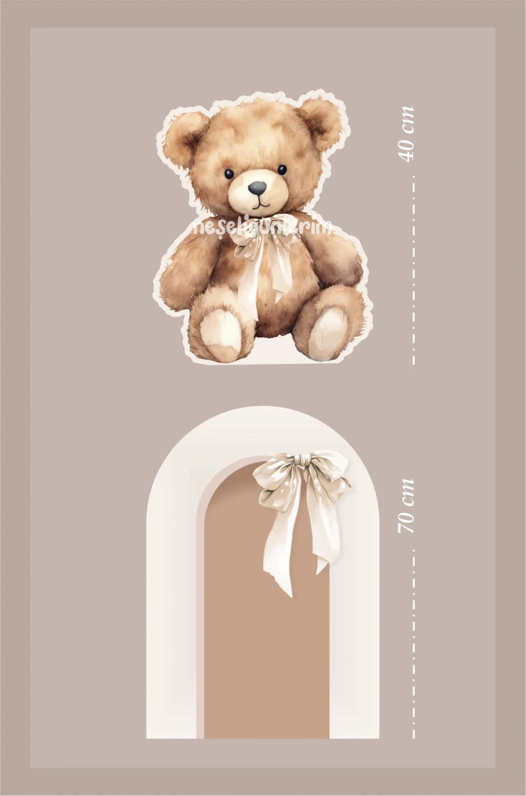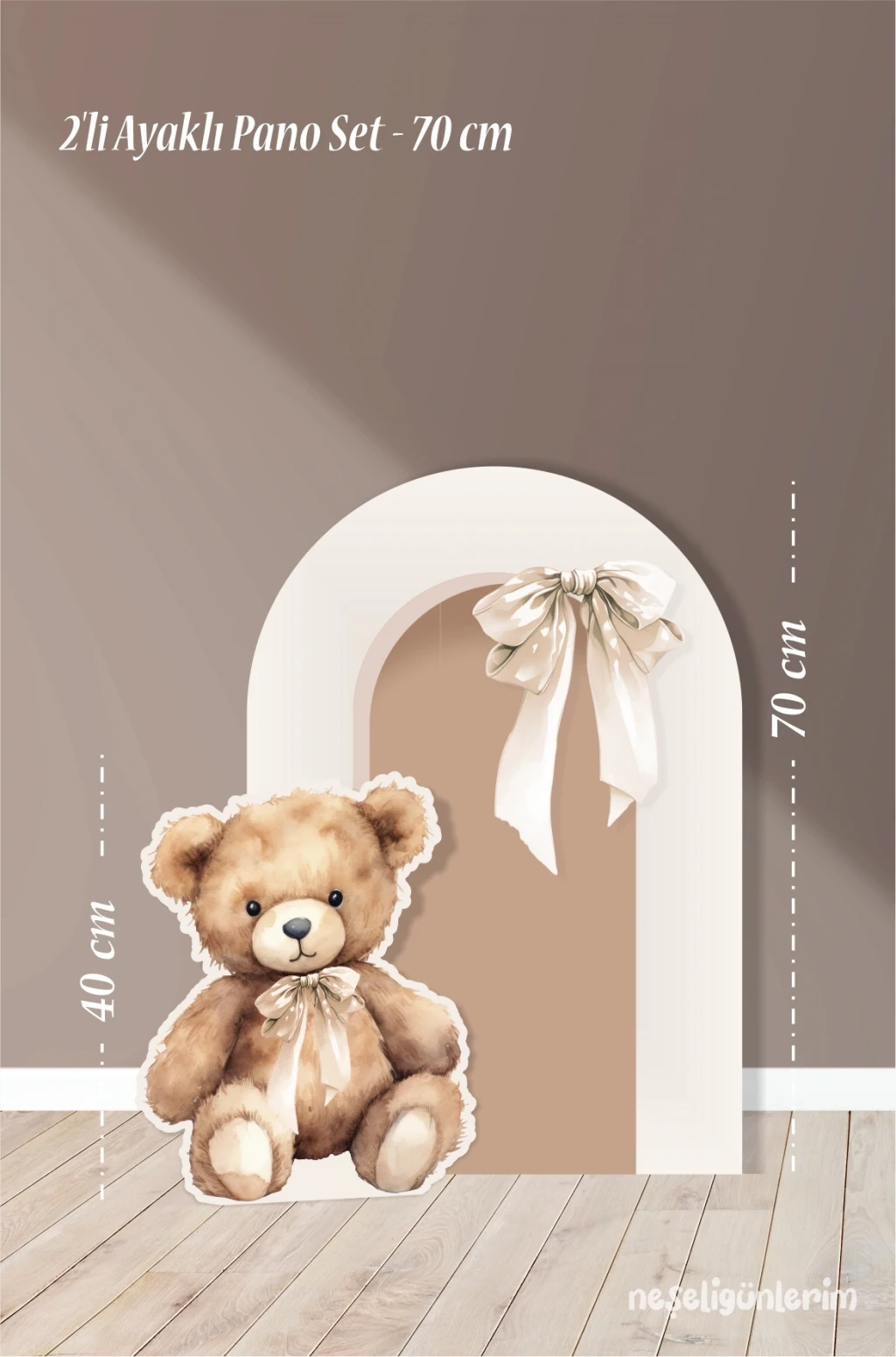 • 2'li Ayaklı Pano Seti Krem Fiyonk, Oturan Ayıcık Temalı / 70 cm - 40 cm