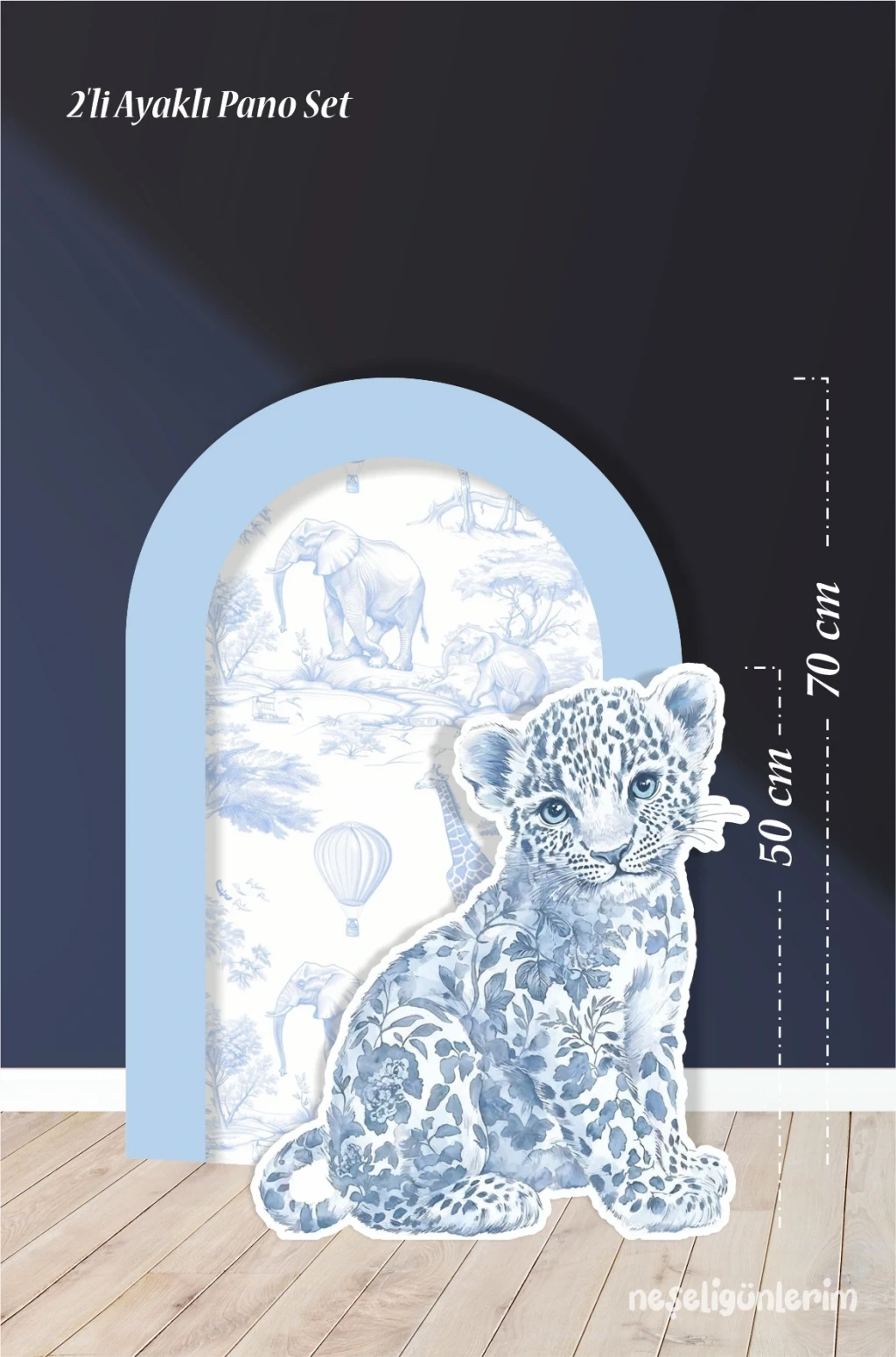 2'li Ayaklı Pano Seti Safari Mavi, Leopar / 70 cm - 50 cm