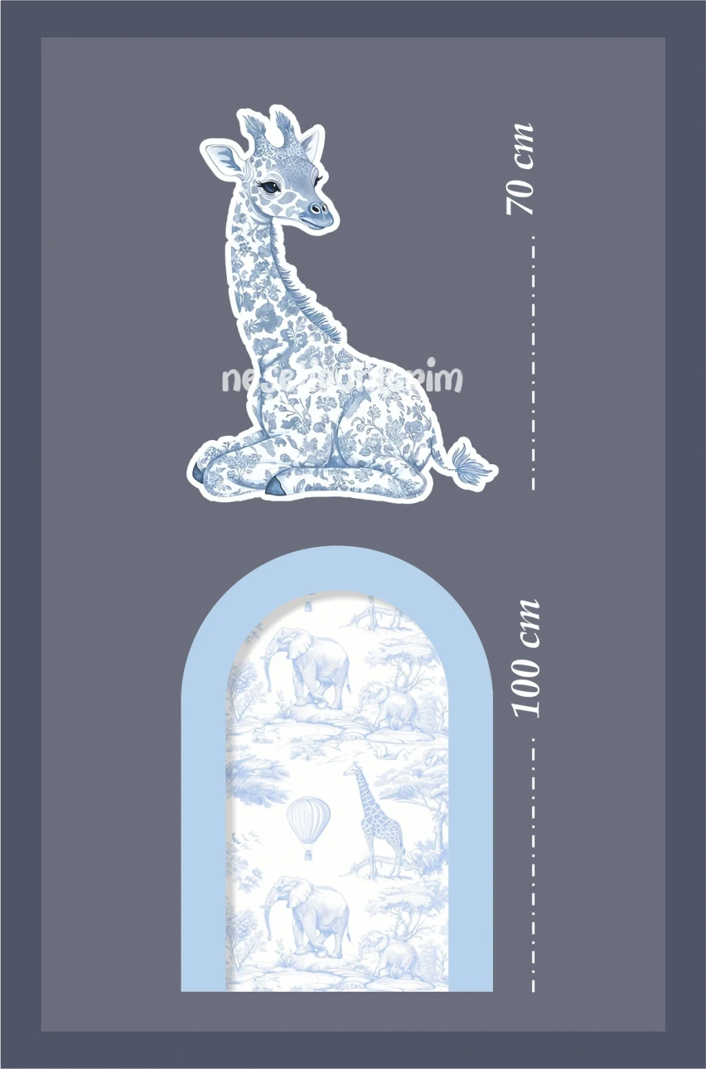 2'li Ayaklı Pano Seti Safari Mavi, Oturan Zürafa Temalı / 100 cm - 70 cm