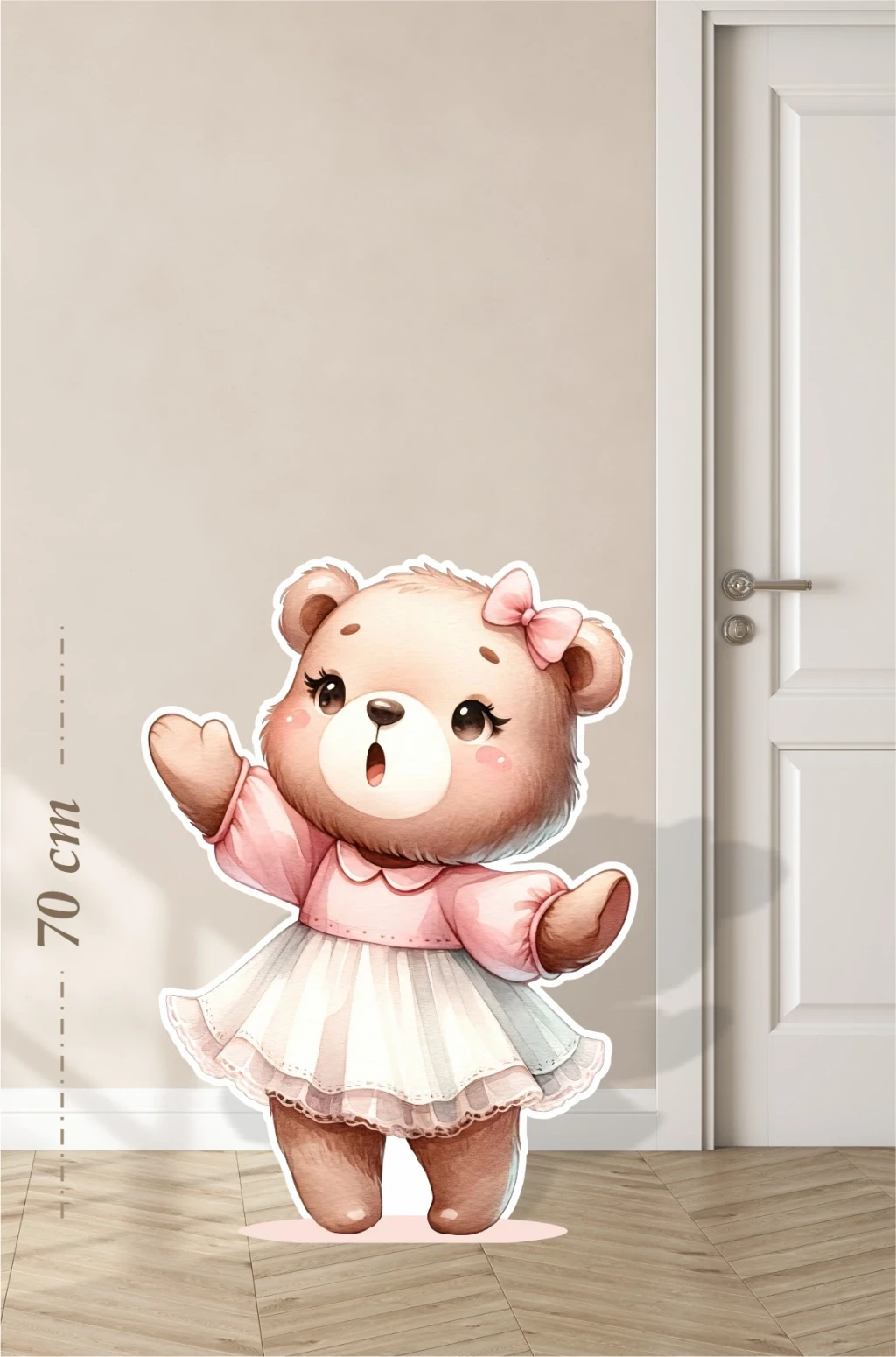 • Beyaz Tütülü Ayakta Sevimli Ayıcık Temalı - 70 cm Ayaklı Pano