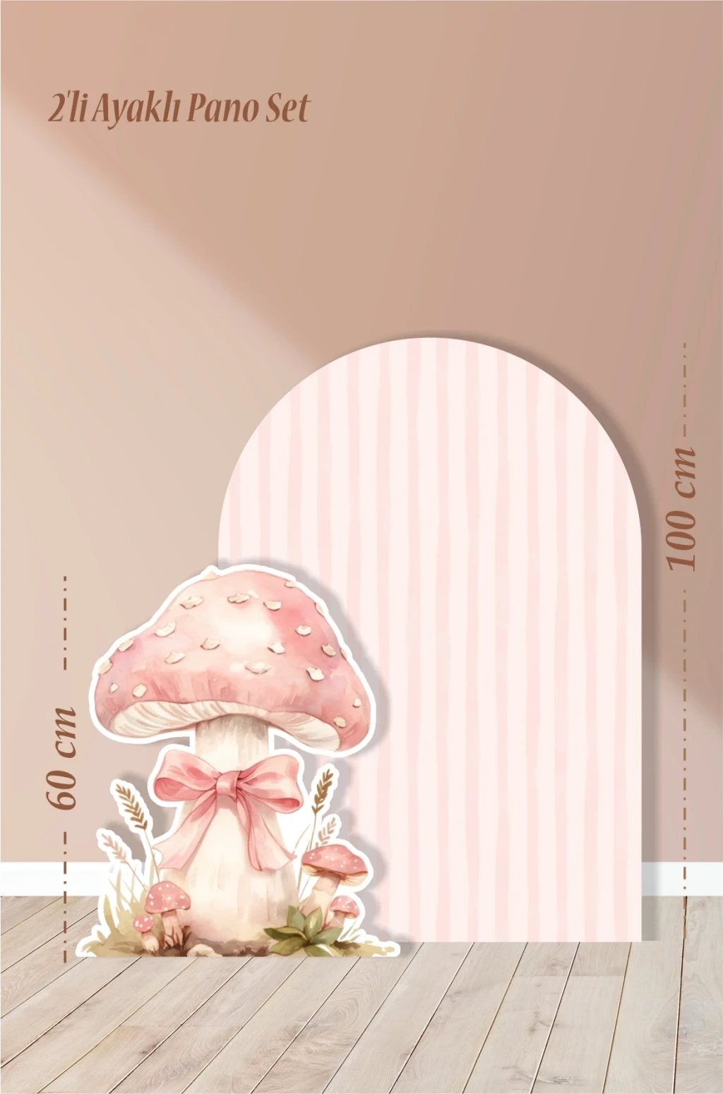 2'li Ayaklı Pano Seti Pudra Çizgili, Fiyonklu Mantar Temalı / 100 cm - 60 cm