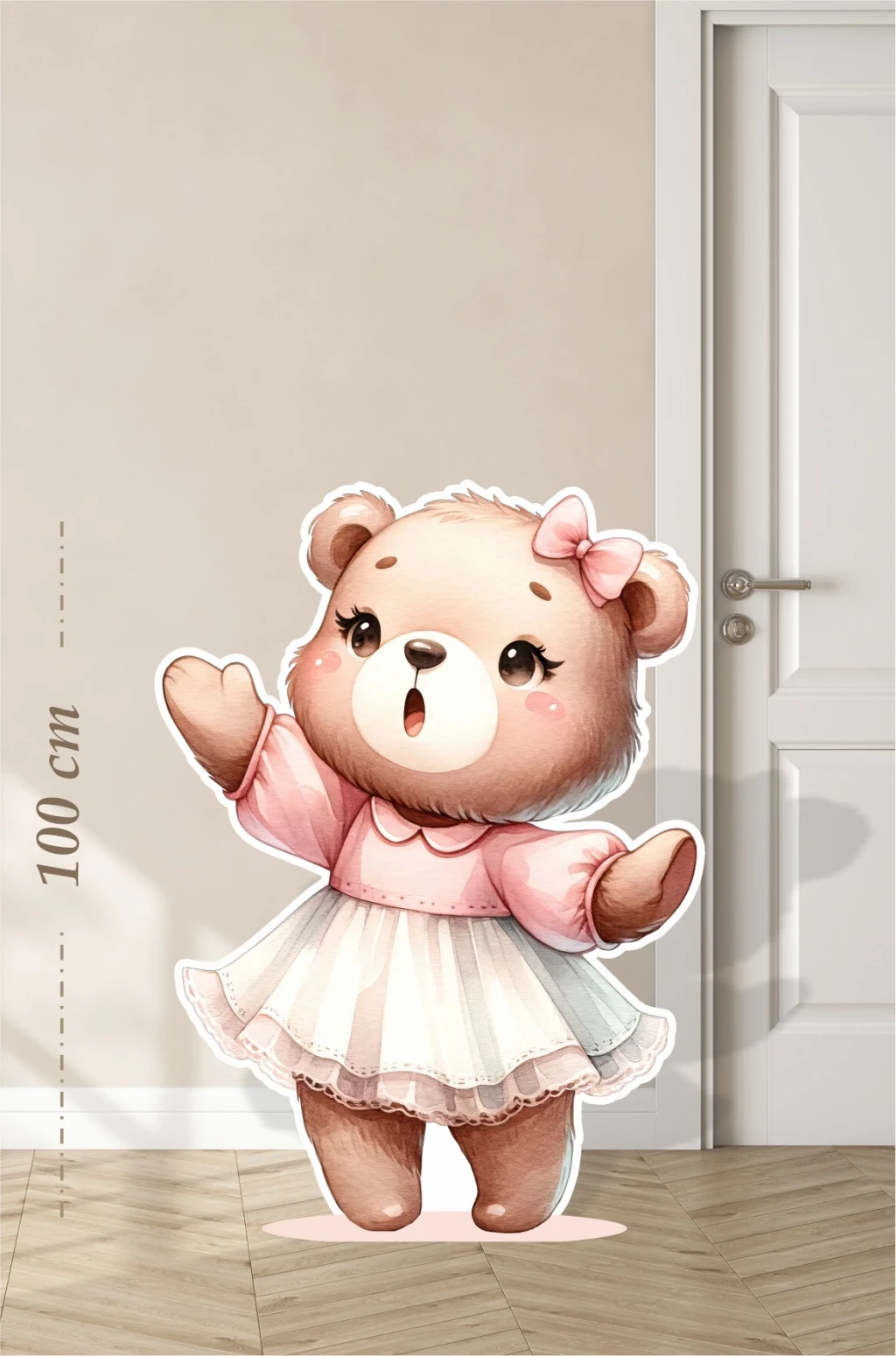 • Beyaz Tütülü Ayakta Sevimli Ayıcık Temalı - 100 cm Ayaklı Pano