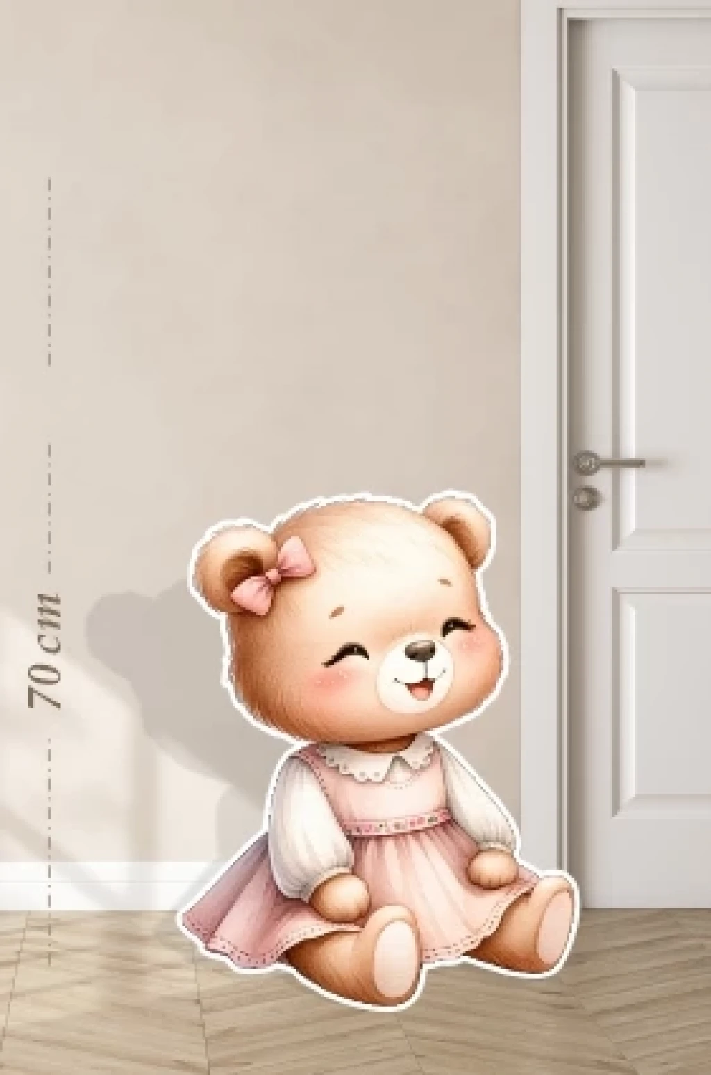 • Elbiseli Oturan Sevimli Ayıcık Temalı - 70 cm Ayaklı Pano