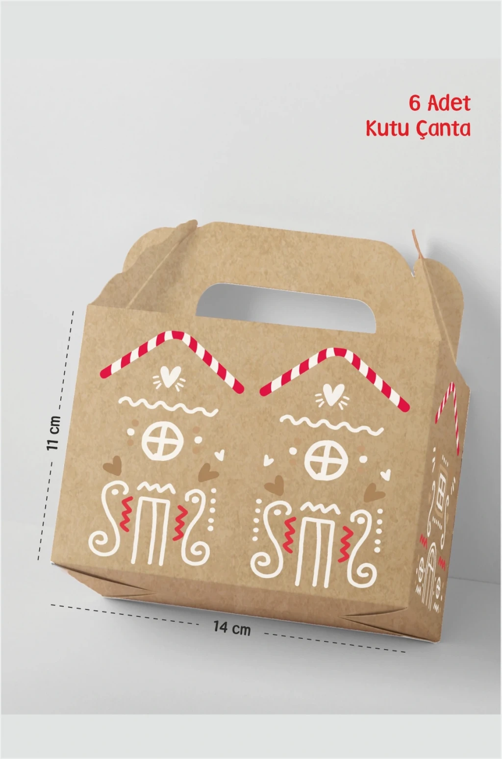 Yılbaşı Çanta Kutu Kurabiye Ev Kutu Çanta Postacı 14x17 cm *6'lı Paket