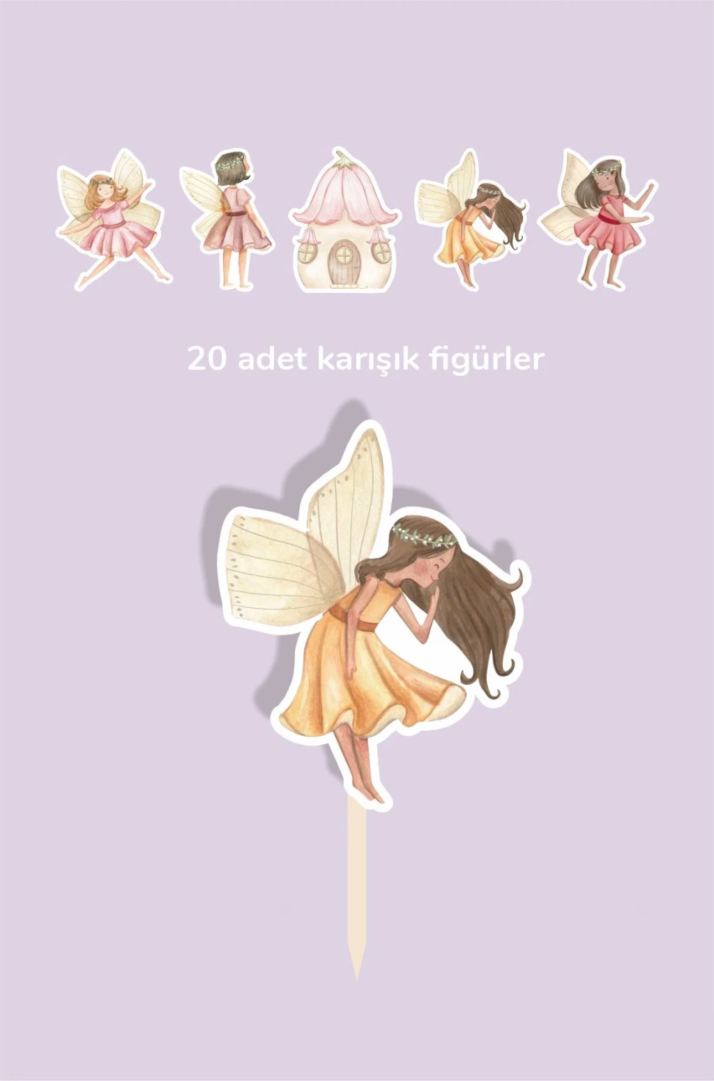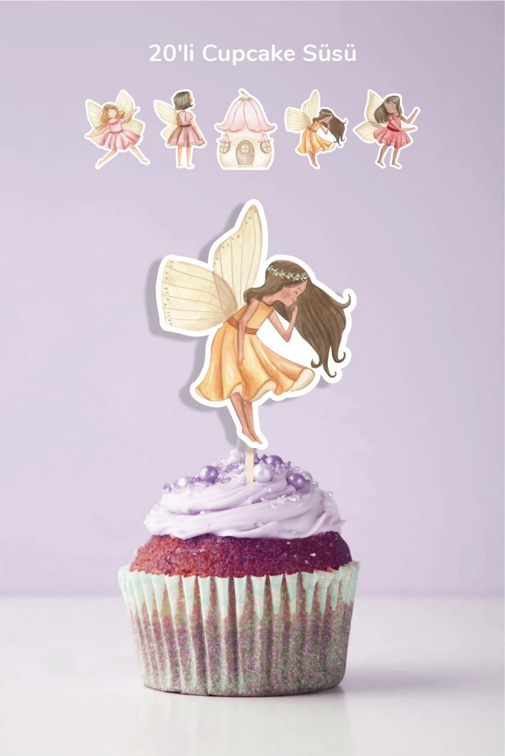 Peri Kızı Temalı Doğum Günü Kürdanlı Cupcake Süsü 20'li