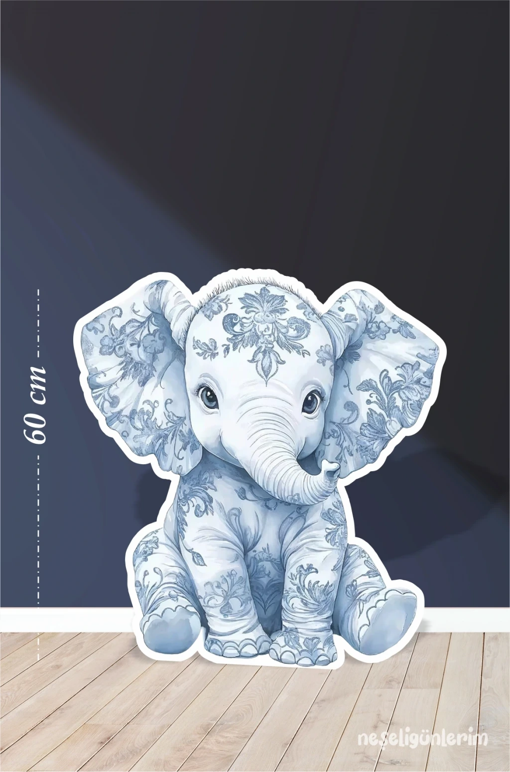 Safari Mavi Oturan Fil Temalı 60 cm Ayaklı Pano Konsept | Tasarım | Kapı | Oda | Dekor