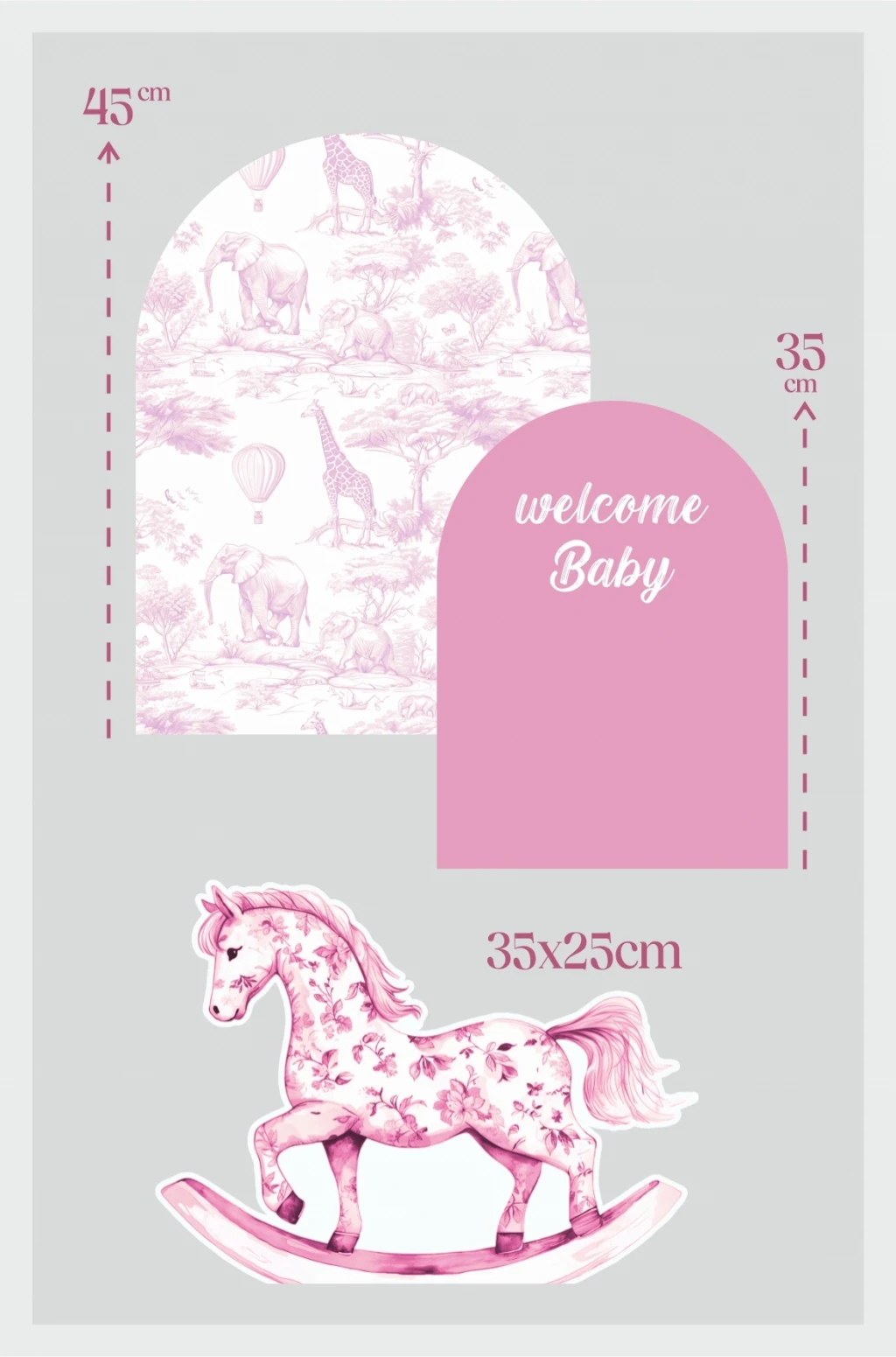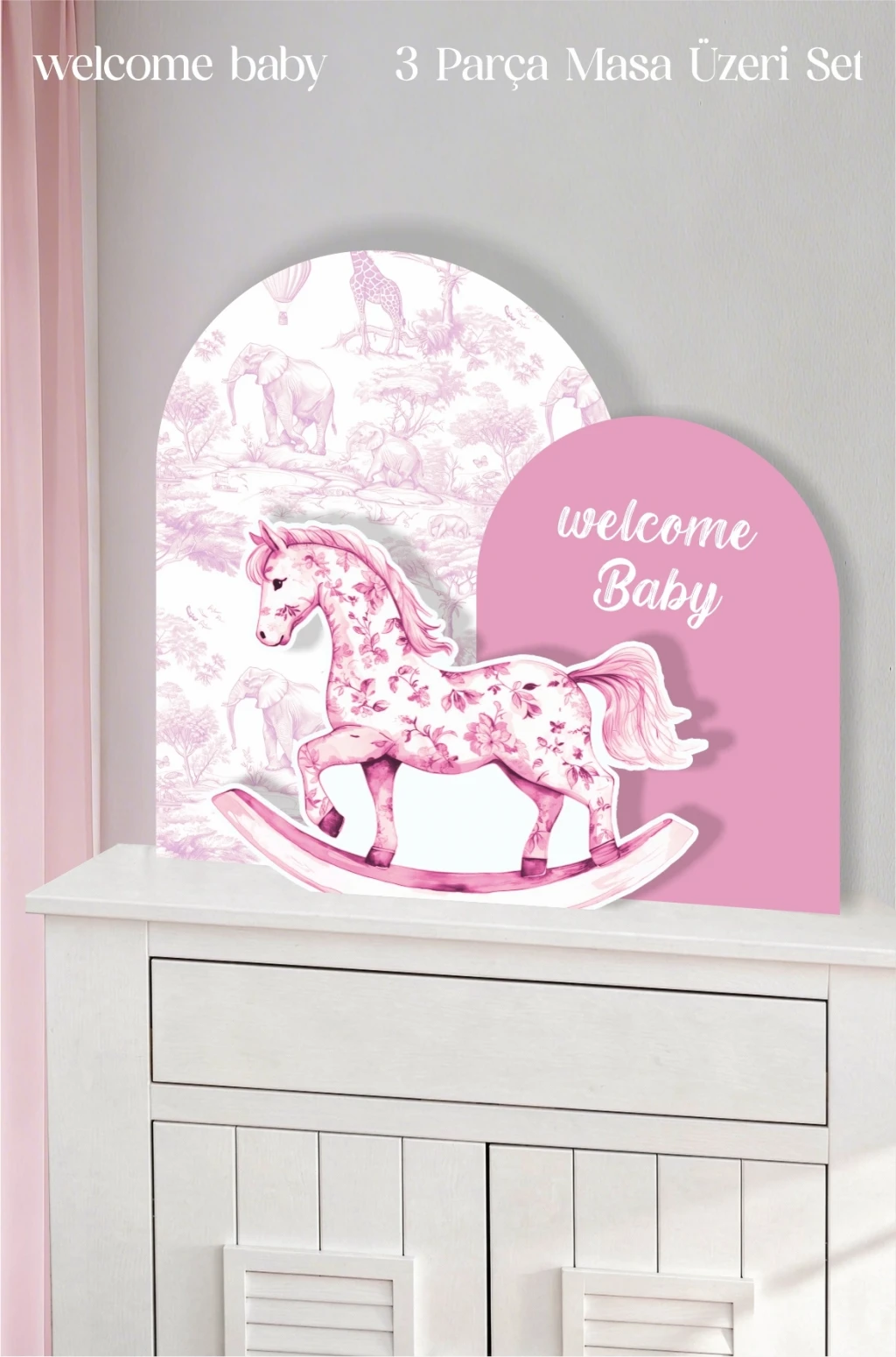 Safari Pembe Fil welcome Baby 3 Parça Masa Üzeri Ayaklı Pano Set
