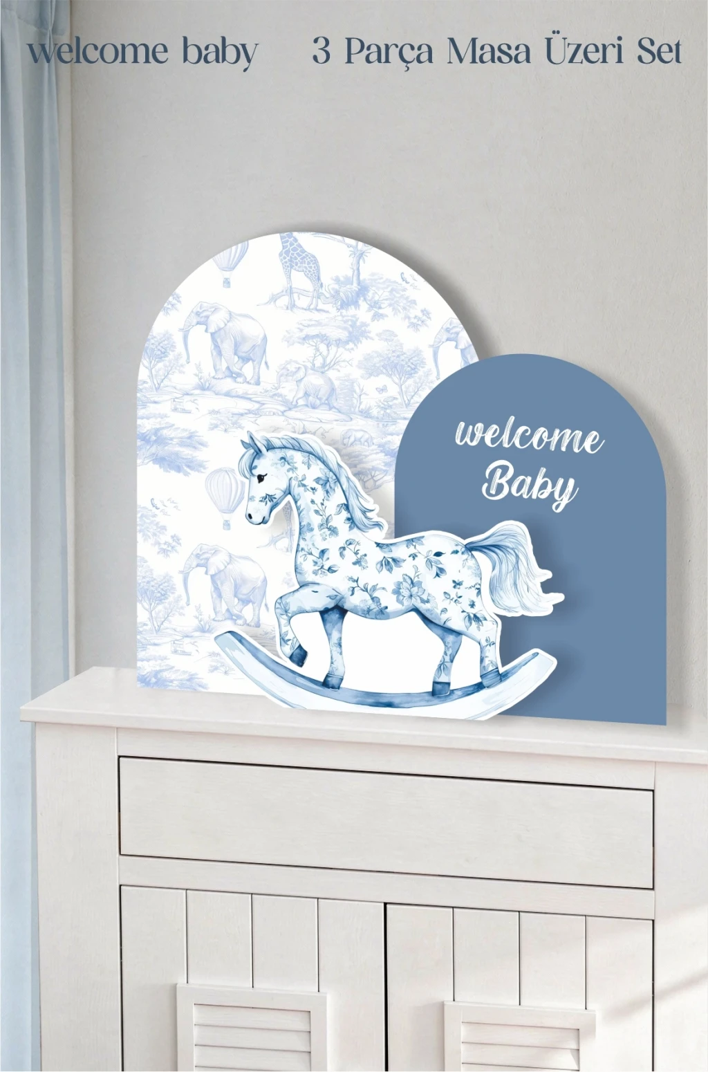 Safari Zürafa welcome Baby 3 Parça Masa Üzeri Ayaklı Pano Set