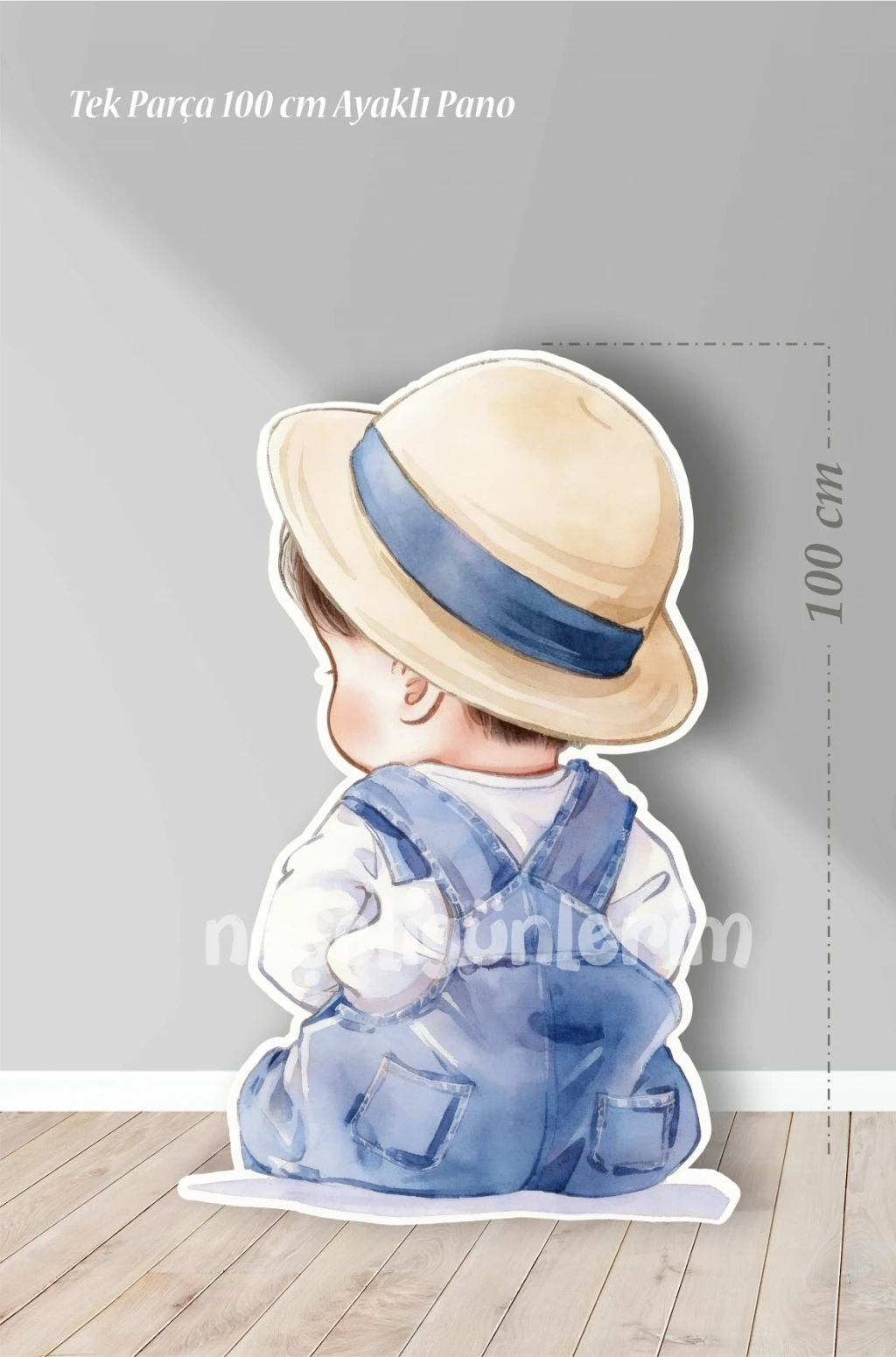 • Şapkalı Oturan Erkek Bebek 100 cm Ayaklı Pano | Dekor | Mavi | Blue